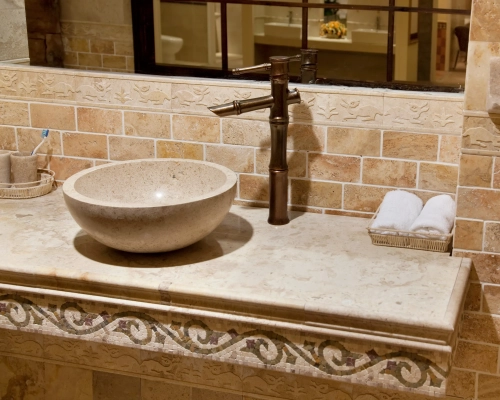 Traverten, mermer, su mermeri ve kayağan taşı gibi doğal malzemelerle levha, kurna lavabo, karo ve yapı taşı imalatı yapıyoruz.